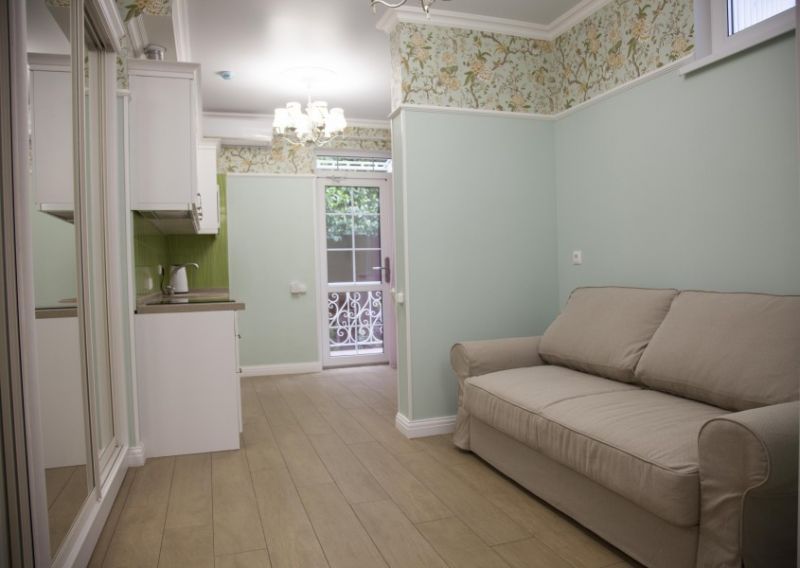 Четырехэтажный корпус отеля возвышается на Привольном переулке. В распоряжении гостей уютные 2-х и 4-местные номера разной категории комфорта со светлым интерьером и индивидуальным санузлом. В каждом номере установлена сплит-система, стиральная машина, телевизор, электрочайник и мини-холодильник, санузел с душем. Некоторые номера оснащены, среди прочего, мини-кухней с микроволновой печью, индукционной плитой и посудомоечной машиной. До оборудованного городского галечного пляжа – 15 минут пешком.